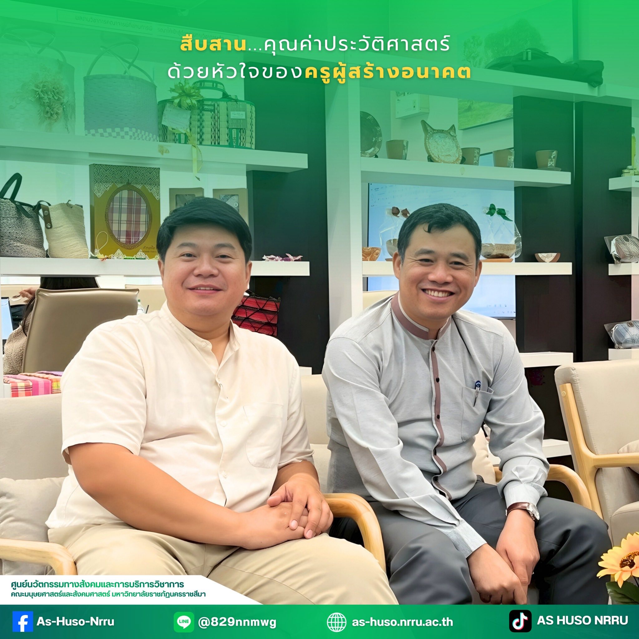 ภาพบรรยากาศการประชุมร่วมกับ ผศ. พิทักษ์ชัย จตุชัย นำโดย รศ.ดร.ศิริวดี วิวิธคุณากร คณบดี พร้อมทีมคณะผู้บริหารศูนย์นวัตกรรมทางสังคมและการบริการวิชาการ คณะมนุษยศาสตร์และสังคมศาสตร์ มหาวิทยาลัยราชภัฏนครราชสีมา ในการวางรากฐานการพัฒนาหลักสูตร “ครูประวัติศาสตร์” ให้แข็งแกร่งและก้าวหน้า เรามุ่งมั่นที่จะสร้างสรรค์หลักสูตรที่ลึกซึ้งและทันสมัย เพื่อผลิตครูผู้มีวิสัยทัศน์ในการขับเคลื่อนสังคม!