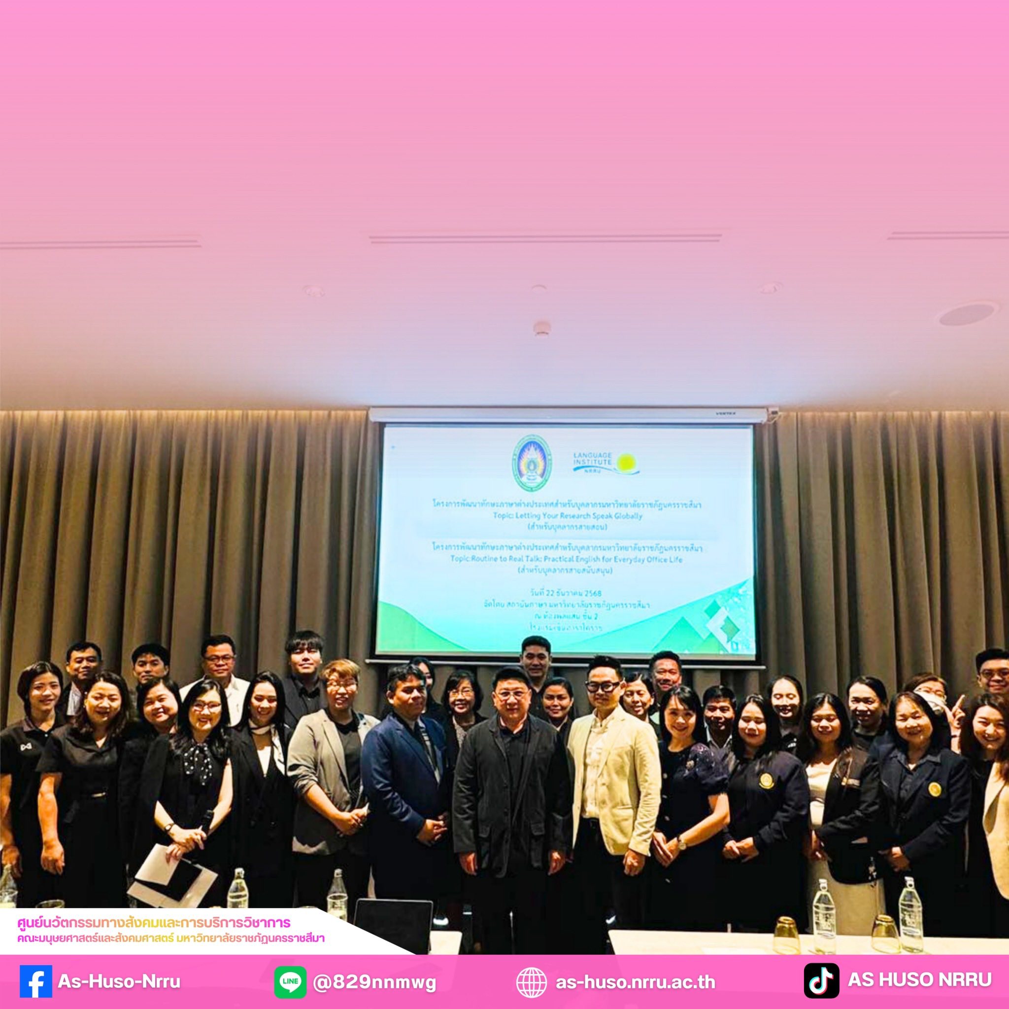 คณะผู้บริหาร ศูนย์นวัตกรรมทางสังคมและการบริการวิชาการ คณะมนุษยศาสตร์และสังคมศาสตร์ มหาวิทยาลัยราชภัฏนครราชสีมา เข้าร่วมอบรมกิจกรรมพัฒนาทักษะภาษาต่างประเทศ Letting Your Research Speak Globally (สำหรับบุคลากรสายสอน) เพื่อเตรียมความพร้อมสู่ The 1st International Webinar in Social Innovation Center and Academic Services 2026 อันเป็นก้าวสำคัญของการสื่อสารงานวิจัยและนวัตกรรมสู่เวทีสากลอย่างมืออาชีพ ดำเนินการจัดจัดงานโดย สถาบันภาษา